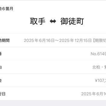 2025年12月16日 / 最終更新日時 : 2025年12月16日 tamura 日々 オフピーク定期券、とっても安いです! こんにちは。上野治療室からです 取手治療室と上野治療室、ふたつを行き来して施術をしています電車通勤ですので当然定期券が必要でして、昨日付で定期券が切れました。 どうして6月と12月なんてお金が出ていく時期に半年分を買った […]