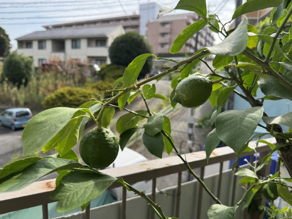 先月のレモンはこちらです。まだ小さいですね