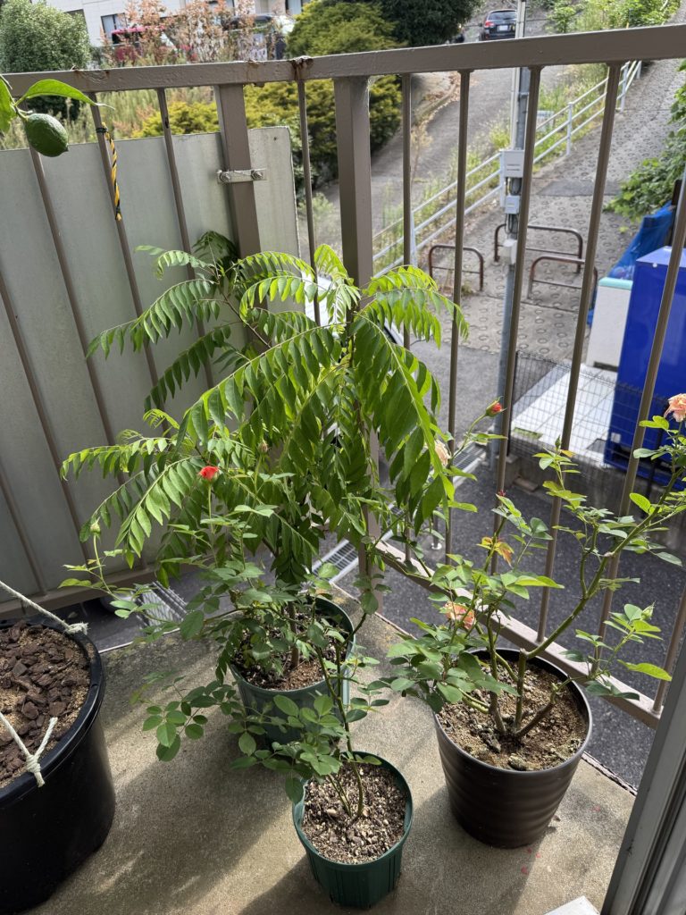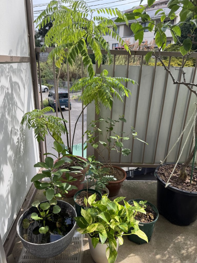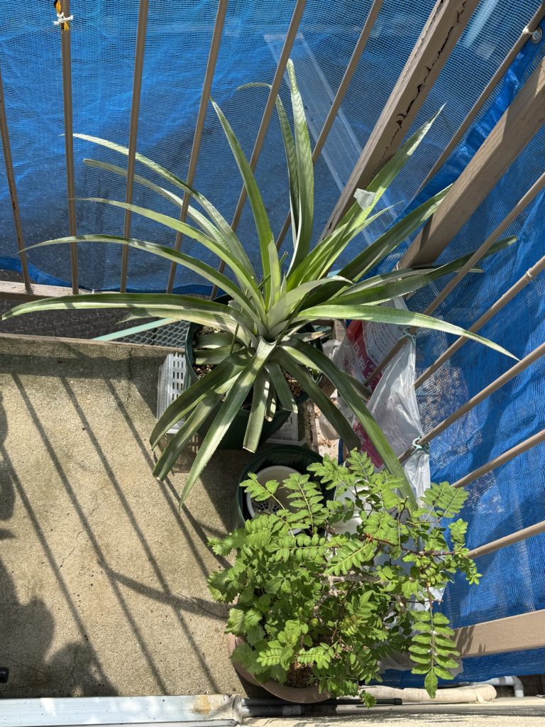 反対側のベランダです。山椒とパイナップル。