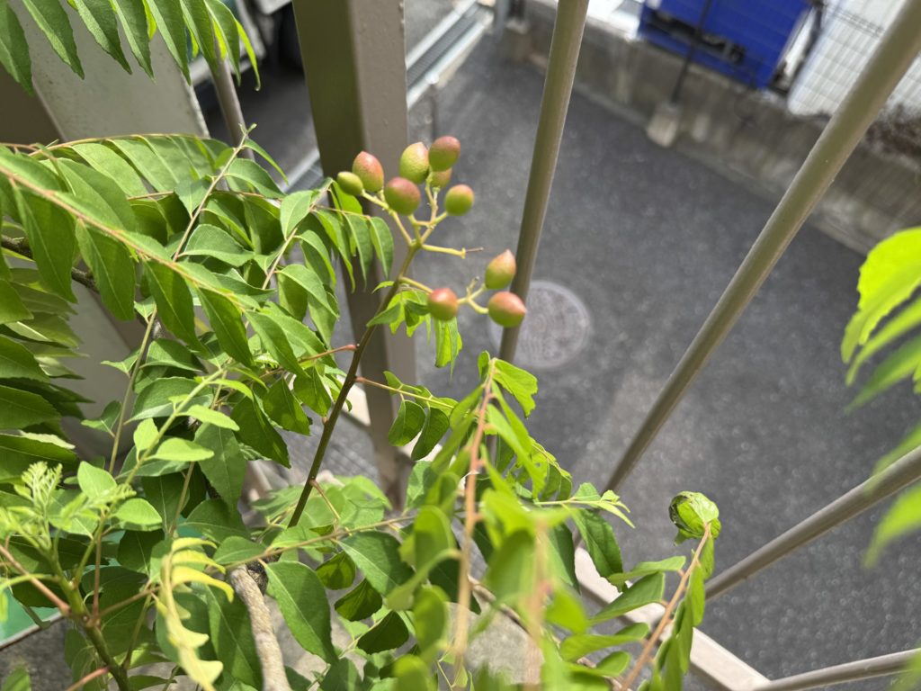 カレーリーフは今年も実がついています。