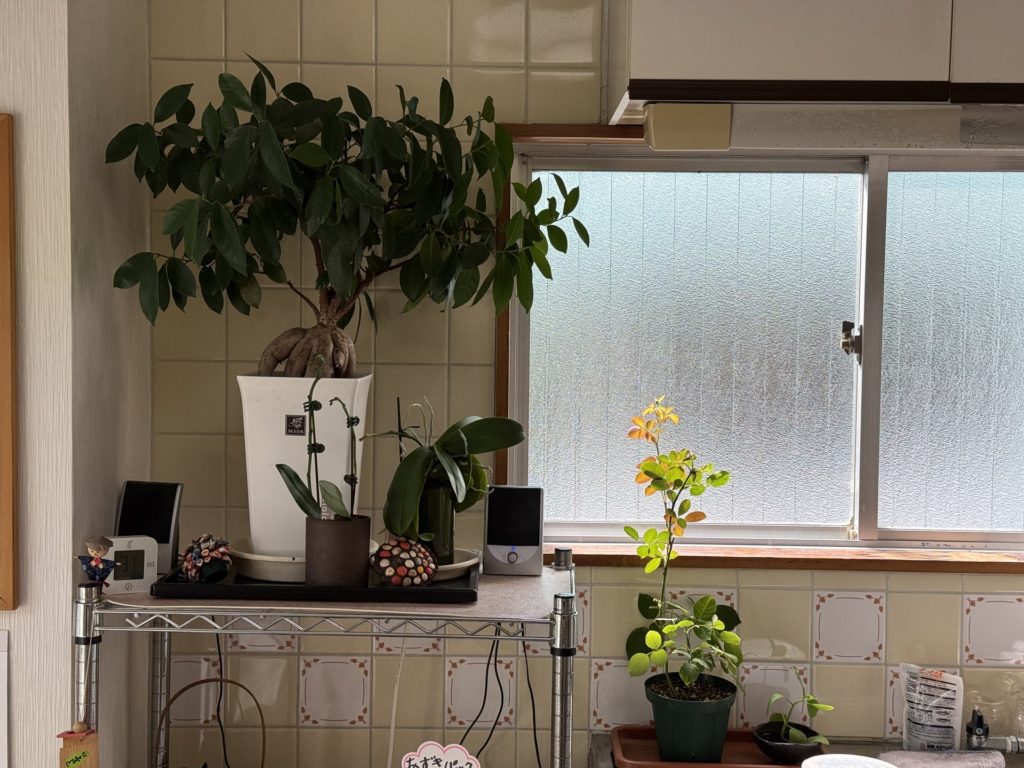 カレーリーフ、マルベリー、セイロンベンケイソウ、ライチ、ポトス、水鉢。