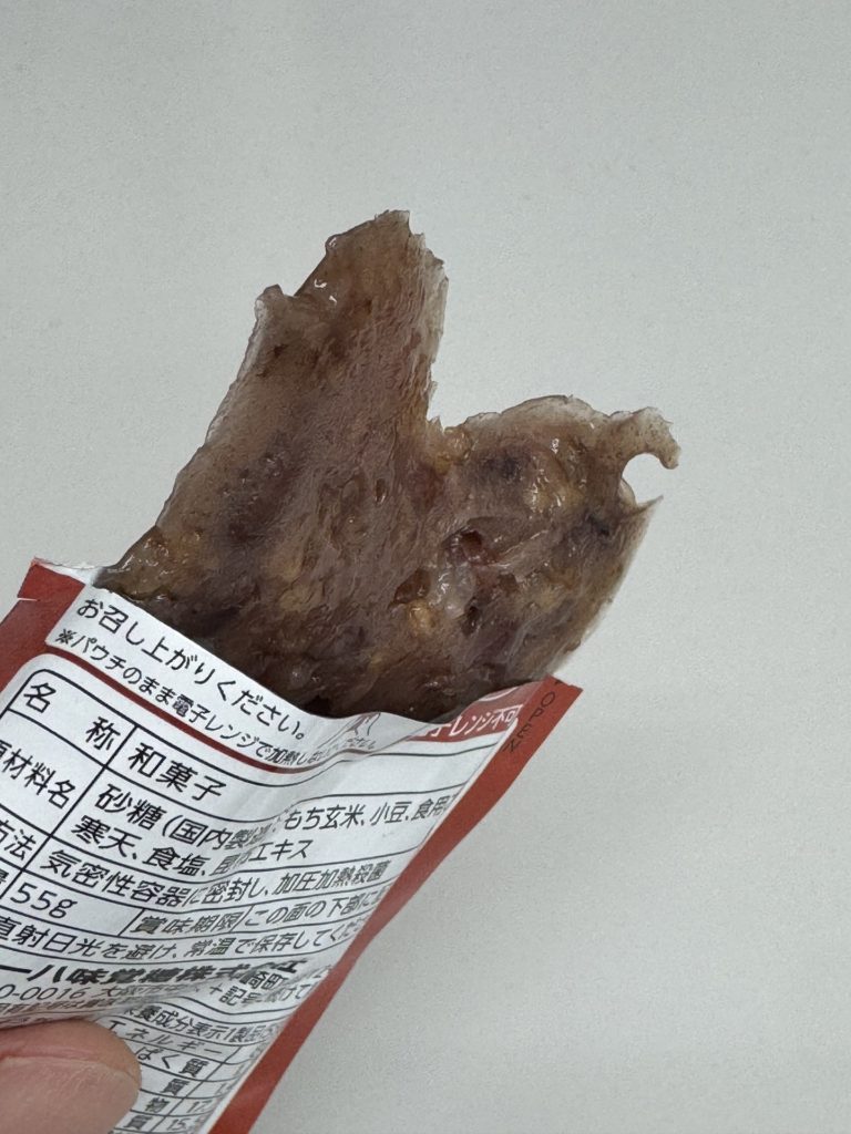 パウチの中にもち玄米と甘い小豆が入っている、というもの。