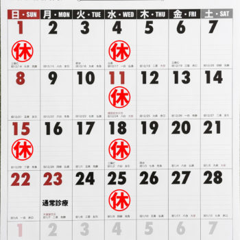 11/3(月/祝)および11/24(月/祝)は休診日とさせて頂きます。