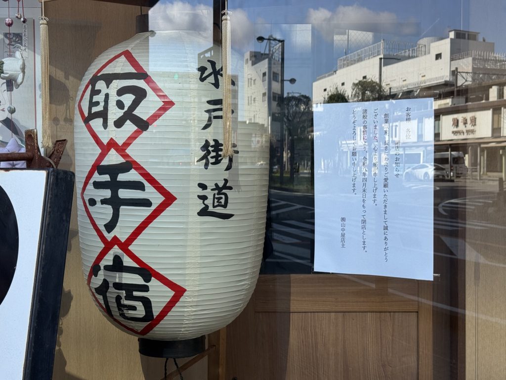 取手駅前にある奈良漬の山中屋さんに張り紙が。